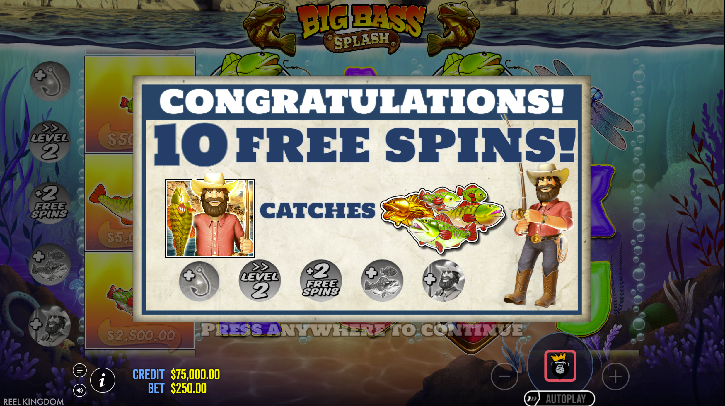 - Persistent Fisherman Wild: During free spins, Fisherman Wild remains fixed on reel 5 ensuring guaranteed collections.
